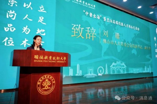 佛山市人大常委会党组副书记、副主任刘珊在致辞中表示,佛山既是制造大市,更是美食名城,顺德坐拥 “世界美食之都”“中国厨师之乡” 金字招牌,餐饮从业人员超 10 万人,海外顺德籍厨艺精英遍布全球,为中餐出海奠定了坚实的产业与人才基础。