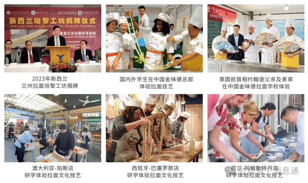 作为兰州牛肉拉面行业走向国际的标杆企业,金味德深耕行业多年,积极布局海外市场,启动海外 “兰州牛肉拉面研学体验培黎工坊” 建设,以传播中华美食文化技艺、开展兰州拉面研学、体验、品鉴、技能培训、创业孵化为宗旨,致力打造中国特色文化技艺研学体验工坊,目前已在新西兰、美国、英国、西班牙、澳大利亚、荷兰、马来西亚、德国等多个国家开展业务。企业还通过走进海外高校开展研学活动等方式,让兰州牛肉拉面成为中外文化交流的桥梁,如今金味德海外门店外国食客占比超60%,实现了从 “华人味道” 到 “世界美食” 的跨越。