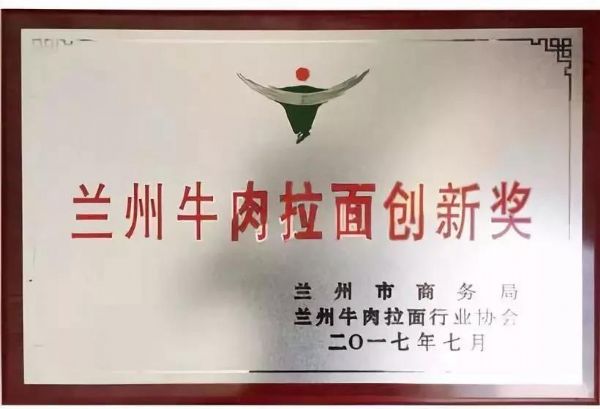 甘肃金味餐饮有限公司荣获兰州牛肉拉面餐饮行业创新奖