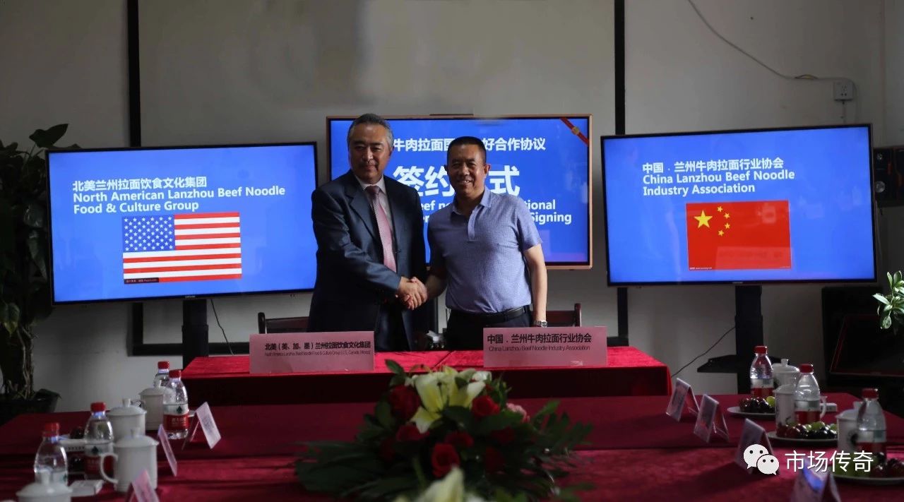同兰州金味德牛肉面文化产业集团董事长梁顺俭签订意向性合作协议。根据协议,计划近期在美国、加拿大、墨西哥等三国各开设一家兰州金味德牛肉面分店。未来将开设百家分店,把兰州牛肉面餐饮及文化传播出去。