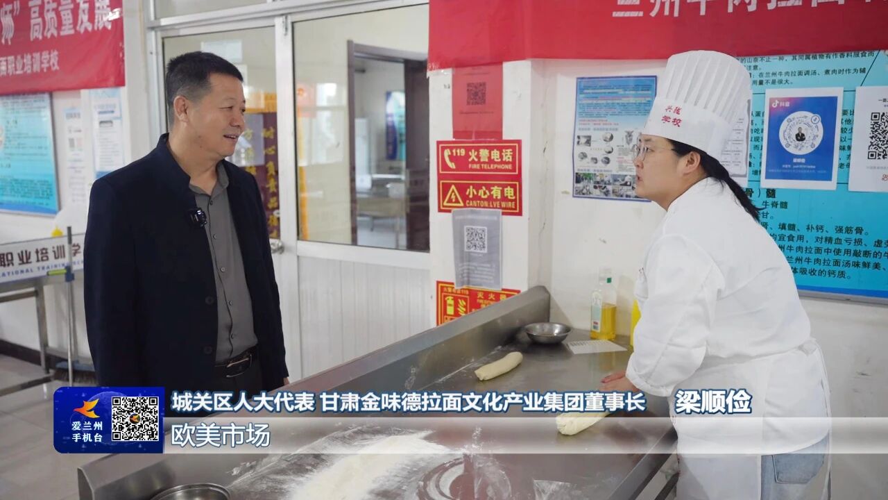 “聚力强省会,代表有作为”活动开展以来,各级人大代表为助推兰州发展,寻良策、献实招,贡献“代表力量”。今天带您认识城关区人大代表、甘肃金味德拉面文化产业集团董事长、甘肃兴陇兰州牛肉拉面职业培训学校校长梁顺俭。这位在牛肉拉面行业打拼了数十载的“拉面代表”,最大的心愿就是把兰州牛肉拉面打造成富民强市的大产业、中式快餐走向世界的龙头品牌。百年牛肉拉面,制作技艺被列入国家级非物质文化遗产目录。走进甘肃兴陇兰州牛肉拉面职业培训学校,来自全国各地的学员们正在老师的指导下练习拉面技术。在这所由梁顺俭创办的培训学校里,学员们可以学习到煮肉、熬汤、拉面、小菜配制等兰州牛肉拉面制作的全套技术。