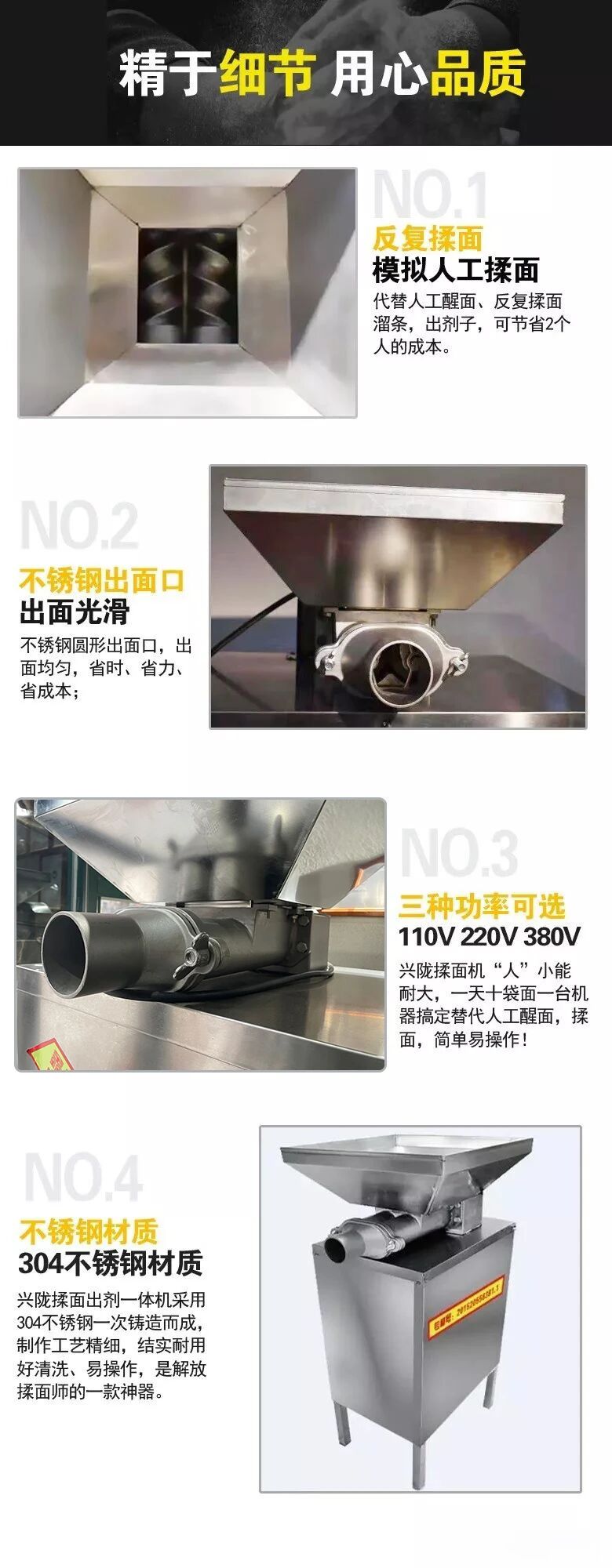 这款揉面出剂一体机参照手工揉面、溜条、出剂的过程研发而成,既可以揉面,同时可以制作出拉面的面剂子。